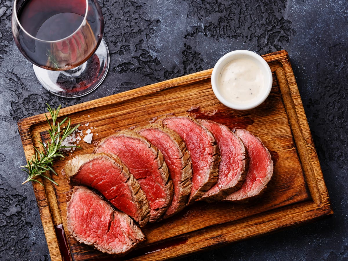 - Sautéed Beef Tenderloin Steaks with Blue Cheese Crumbles Paired with Rioja Reserva, La Antigua Clasico, 2015, Rioja Spain